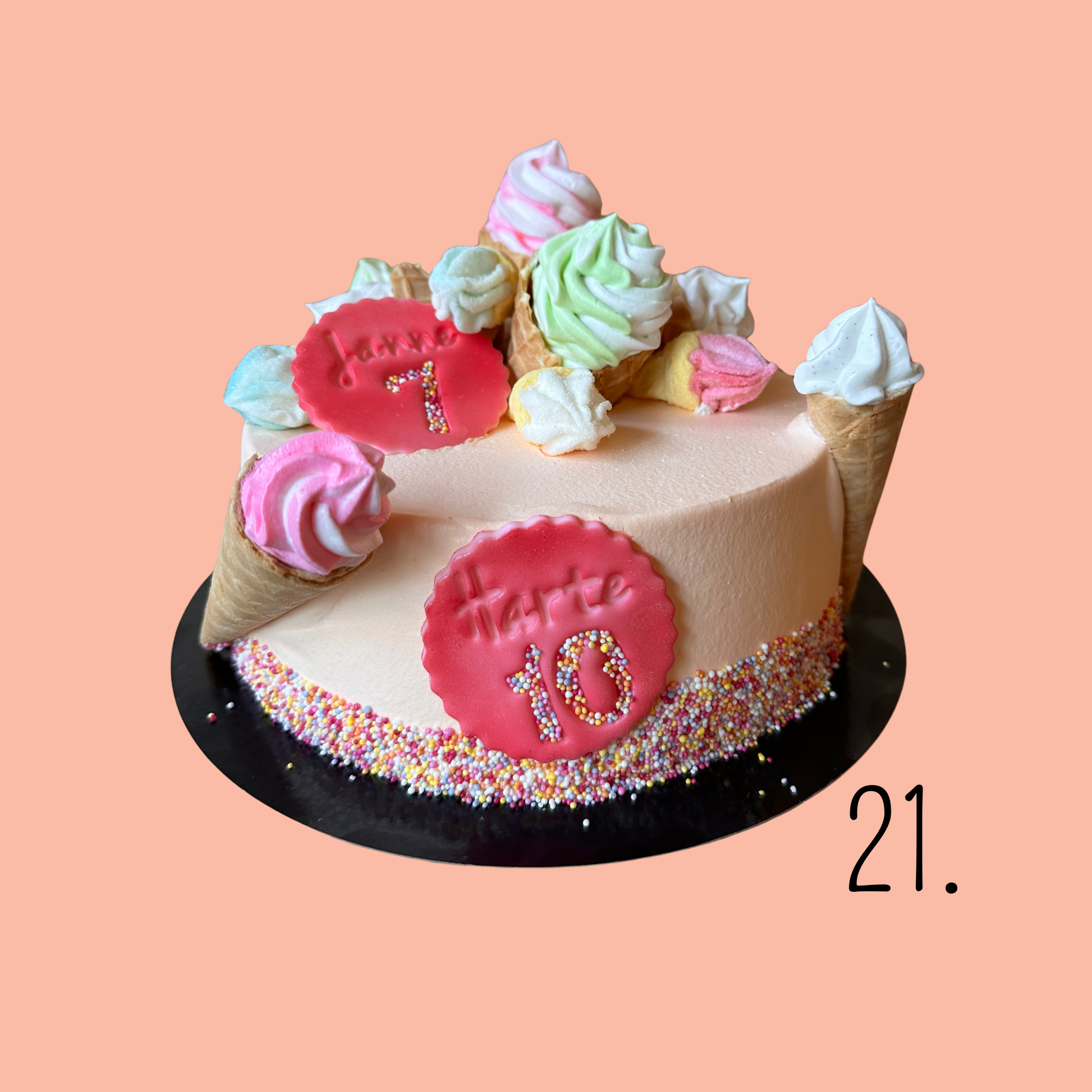 Onze basisijstaarten zijn eenvoudig en stijlvol afgewerkt. Kies jouw favoriete voorbeeld aan de hand van het nummer bij de foto. De kleuren en eventuele versiering kunnen nog aangepast worden naar wens.